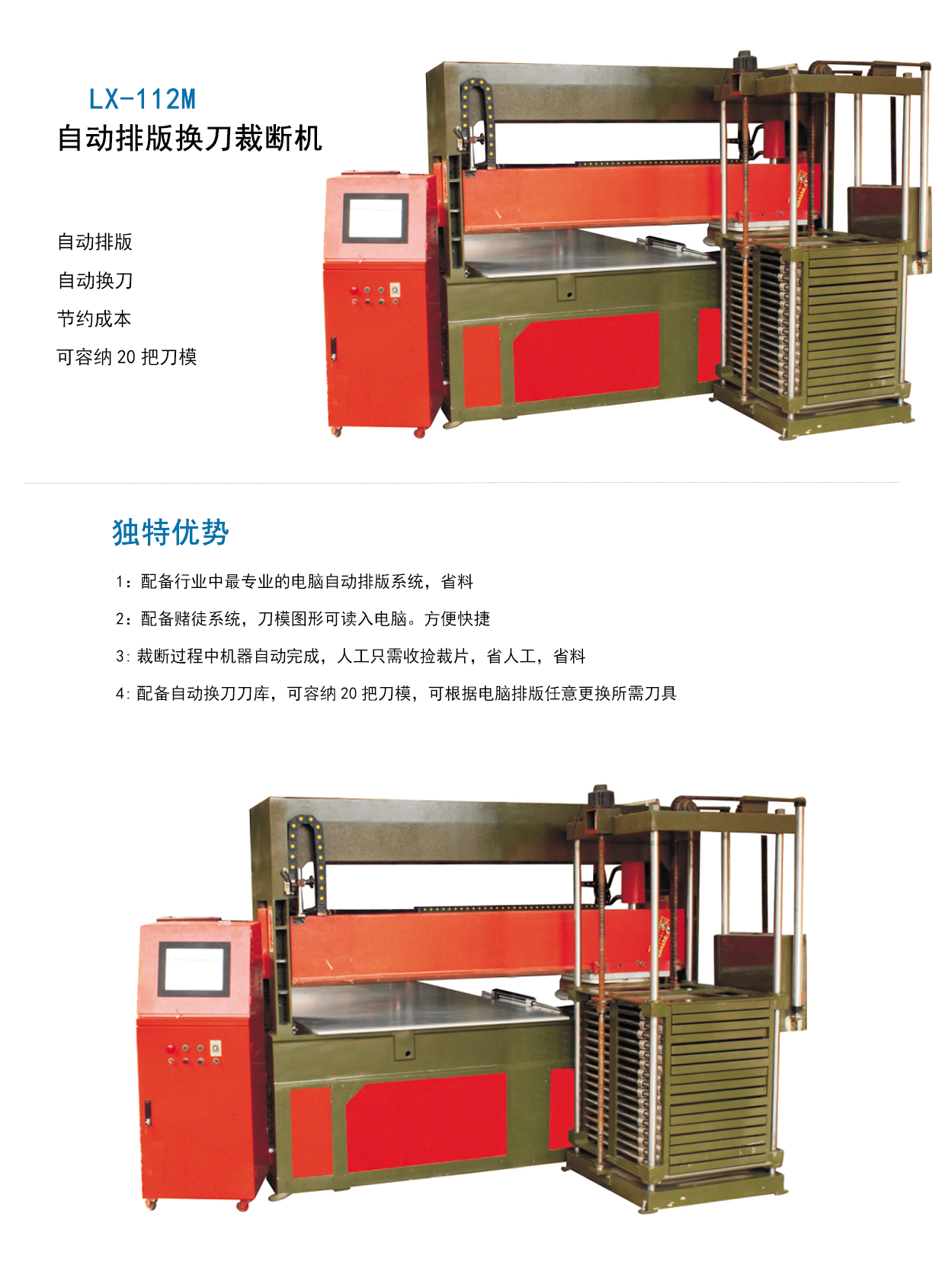 LX-112M 电脑自动排版、自动换刀裁断机